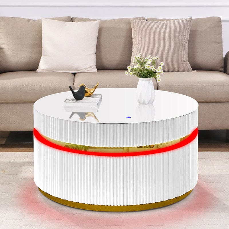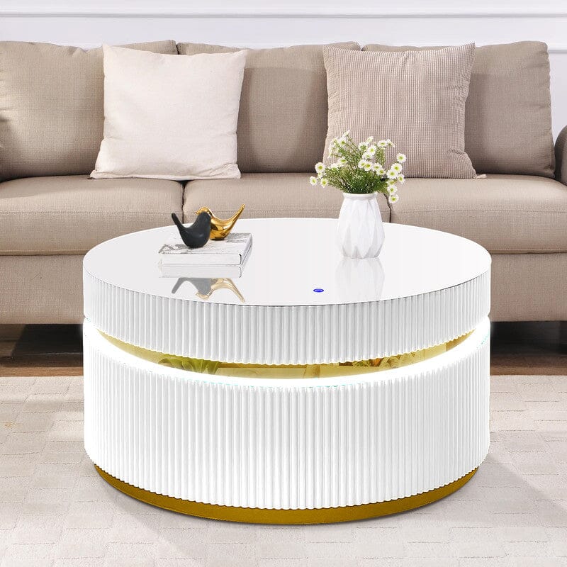 طاولة قهوة دائرية تافيتا مقاس 39 بوصة باللون الأبيض مع سطح زجاجي وإضاءة LED