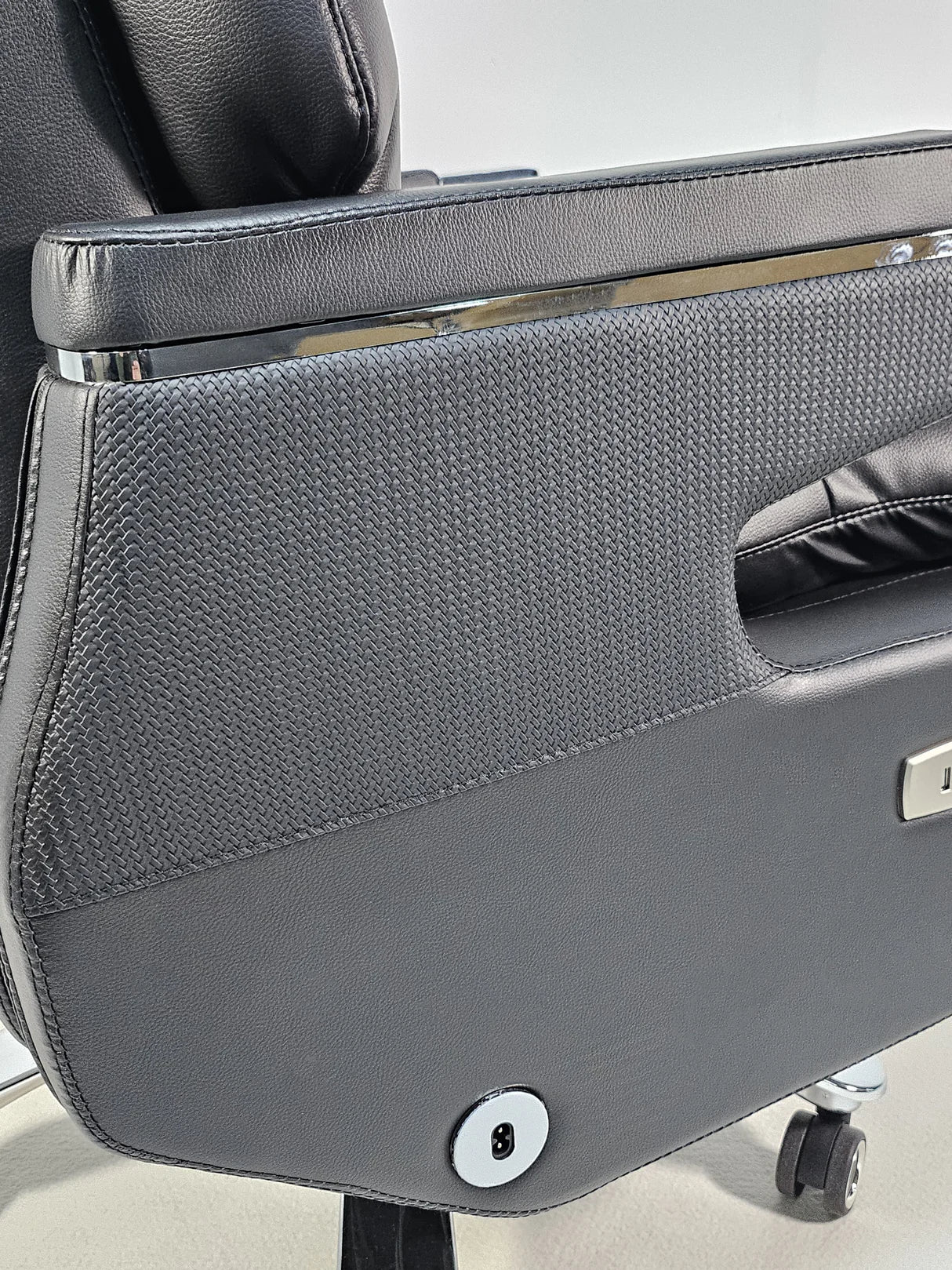 نقدم لكم كرسي A2320 الكهربائي الجديد القابل للإمالة، مكتب جلدي، لعام 2025. مصنوع من مواد عالية الجودة ومُنجّد بجلد صناعي، يوفر هذا الكرسي حشوة ناعمة سخية لتجربة جلوس مريحة. يتميز بآلية إمالة إلكترونية تتضمن مسندًا للقدمين عند تمديده بالكامل. توجد أدوات التحكم في هذه الآلية في مكان ملائم على مسند الذراع الأيمن.