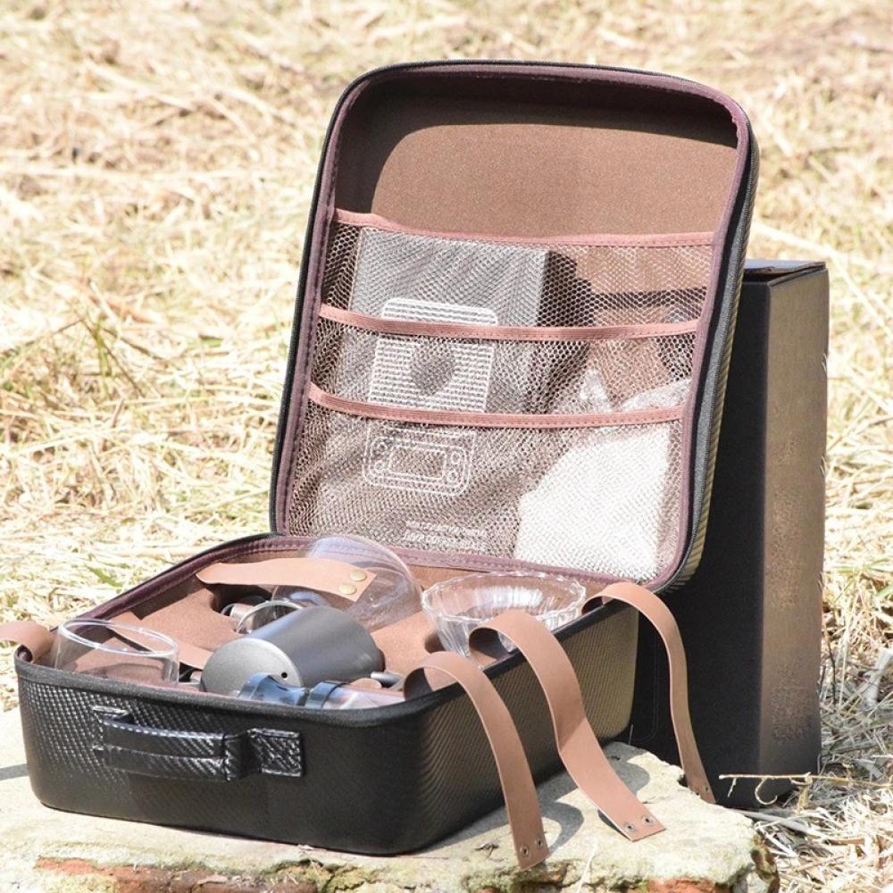 A travel coffee accessory set is an excellent choice for coffee lovers who enjoy their favorite coffee while traveling outdoors. The set typically includes: